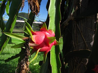 And what do they taste like? The pitaya or dragon fruits are delicious, they have a delicate flavour, the flesh is watery and textured with the small black edible seeds. They are lovely eaten fresh out of hand or sliced into a fruit salad. If you are local you will find John at the New Brighton Farmers Market on Tuesdays and the Byron Bay Farmers Market on Thursdays.